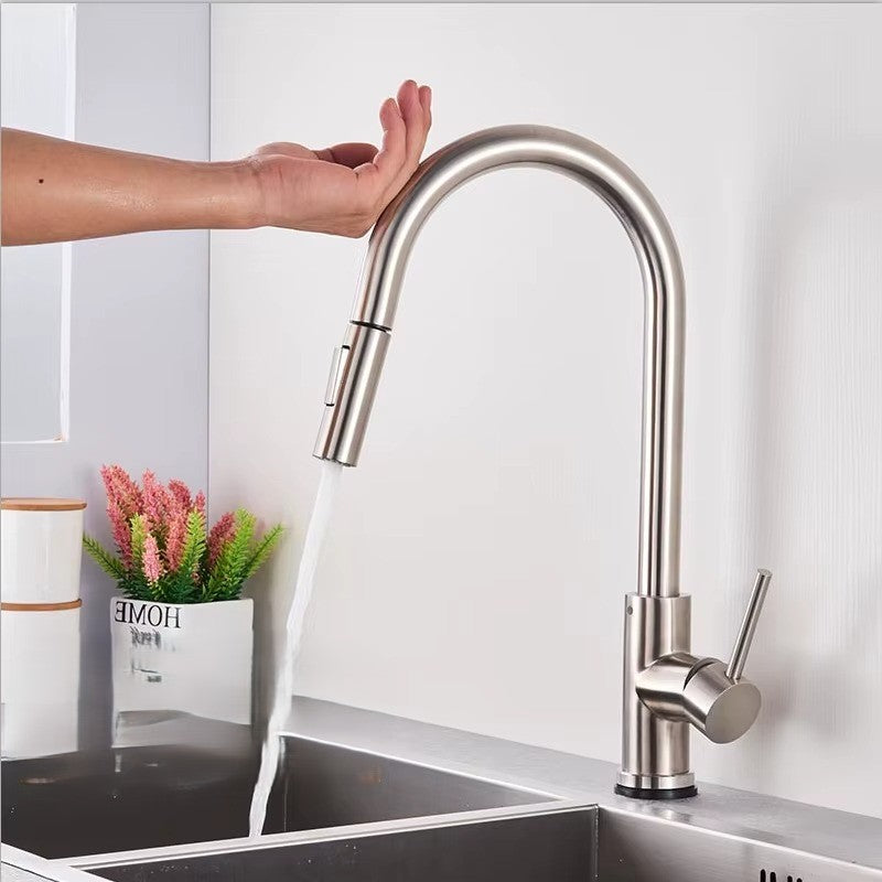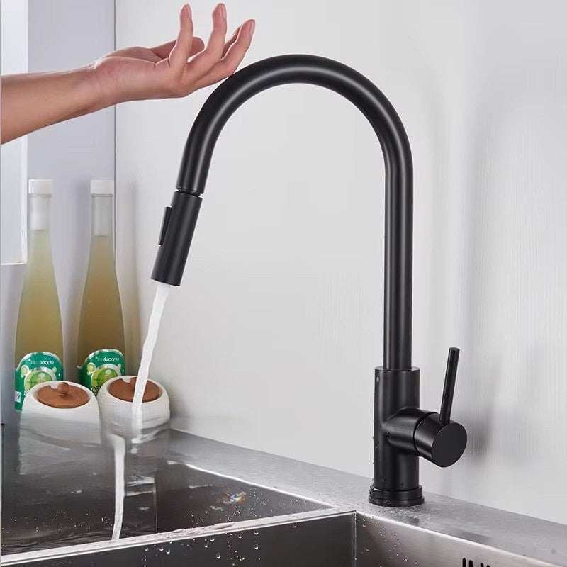 Czujnik dotyku pozwala uruchamiać strumień jednym lekkim muśnięciem, bez brudzenia dźwigni podczas gotowania. Perlator zmniejsza zużycie wody nawet o 30%, a wyciągana wylewka z obrotem 360° daje pełną swobodę - od napełniania wysokich garnków po szybkie płukanie zlewu.